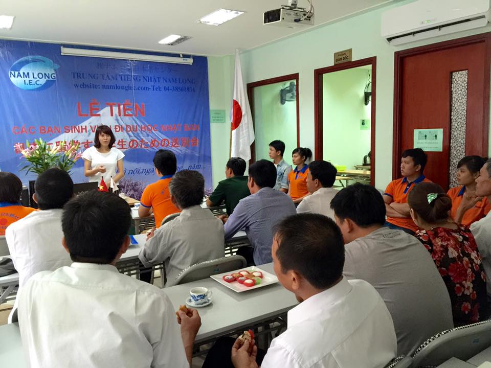 Buổi lễ chia tay được tổ chức trang trọng tại văn phòng công ty. Tới dự lễ chia tay có các bậc phụ huynh - học sinh du học Nhật Bản kỳ tháng 7/2015, các em học sinh đang theo học Nhật ngữ tại Trung tâm NamLong  cùng tập thể lãnh đạo, cán bộ, giáo viên  công ty.